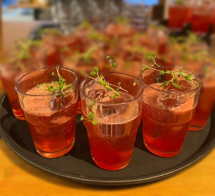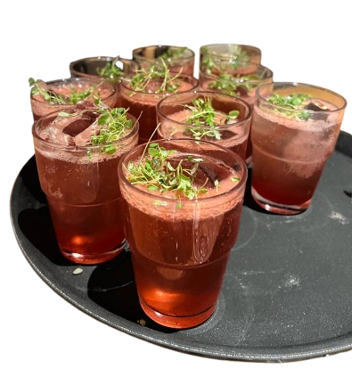 Vodka HighballDark Vodka, Granberry Schrub , Soda + Tyme on top |